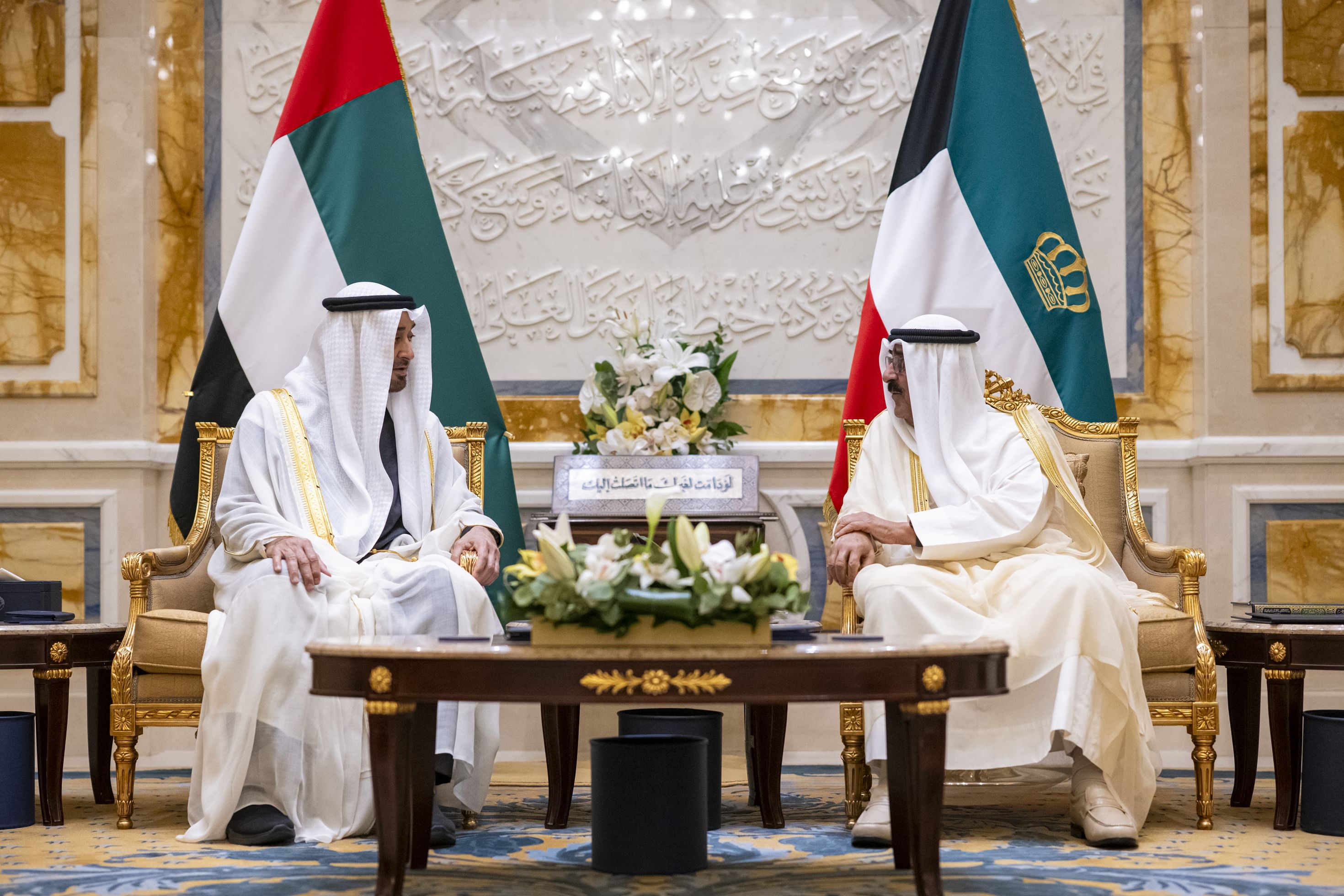 UAE President His Highness Sheikh Mohamed bin Zayed Al Nahyan met today with His Highness Sheikh Meshal Al-Ahmad Al-Jaber Al-Sabah, Emir of the State of Kuwait, to discuss the deep-rooted fraternal ties between the two countries and ways to enhance cooperation, particularly in development and economic sectors, to advance their mutual interests and support the prosperity of both peoples. The talks were held at Bayan Palace as part of the UAE President’s fraternal visit to Kuwait. The Emir of Kuwait welcomed His Highness Sheikh Mohamed bin Zayed, with the two leaders exchanging warm greetings reflecting the close ties between their nations and peoples. The meeting also covered a number of regional and international issues, with a particular focus on the latest developments in the Middle East. The two leaders affirmed their countries’ support for all initiatives aimed at securing a ceasefire in the Gaza Strip, stressing that a just and comprehensive peace based on the two-state solution remains the only path towards lasting stability in the region and the realisation of the legitimate aspirations of the Palestinian people. They also highlighted the importance of building on the growing international recognition of the State of Palestine to support efforts towards peace and stability. The two sides further discussed the progress of joint Gulf cooperation, affirming their commitment to supporting efforts that strengthen the Gulf Cooperation Council and serve the aspirations of its peoples for development and prosperity. His Highness Sheikh Meshal Al-Ahmad Al-Jaber Al-Sabah later hosted a luncheon in honour of His Highness the UAE President and the accompanying delegation. The meeting and luncheon were attended by His Highness Sheikh Mansour bin Zayed Al Nahyan, Vice President, Deputy Prime Minister and Chairman of the Presidential Court; H.H. Lt. General Sheikh Saif bin Zayed Al Nahyan, Deputy Prime Minister and Minister of the Interior; H.H. Sheikh Theyab bin Mohamed bin Zayed Al Nahyan, Deputy Chairman of the Presidential Court for Development and Fallen Heroes' Affairs; H.H. Sheikh Hamdan bin Mohamed bin Zayed Al Nahyan, Deputy Chairman of the Presidential Court for Special Affairs; H.H. Sheikh Zayed bin Mohamed bin Zayed Al Nahyan; Sheikh Mohamed bin Hamad bin Tahnoun Al Nahyan, Adviser to the UAE President; along with a number of ministers and senior officials. The meeting and luncheon were also attended by His Highness Sheikh Sabah Al-Khaled Al-Hamad Al-Sabah, Crown Prince of Kuwait; His Highness Sheikh Ahmad Abdullah Al-Ahmad Al-Sabah, Prime Minister of Kuwait; along with a number of Sheikhs, ministers and senior officials. At the conclusion of his fraternal visit, His Highness Sheikh Mohamed bin Zayed Al Nahyan departed Kuwait. His Highness was bid farewell by His Highness the Crown Prince of Kuwait, along with a number of Sheikhs, ministers and senior officials.